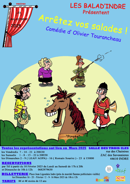 Notre troupe de théâtre, « Les Balad’Indre », est une association artistique qui promeut le théâtre dans la ville d’Indre. Elle se compose d’une équipe passionnée et dynamique qui partage la même ambition : créer des spectacles captivants et divertissants.